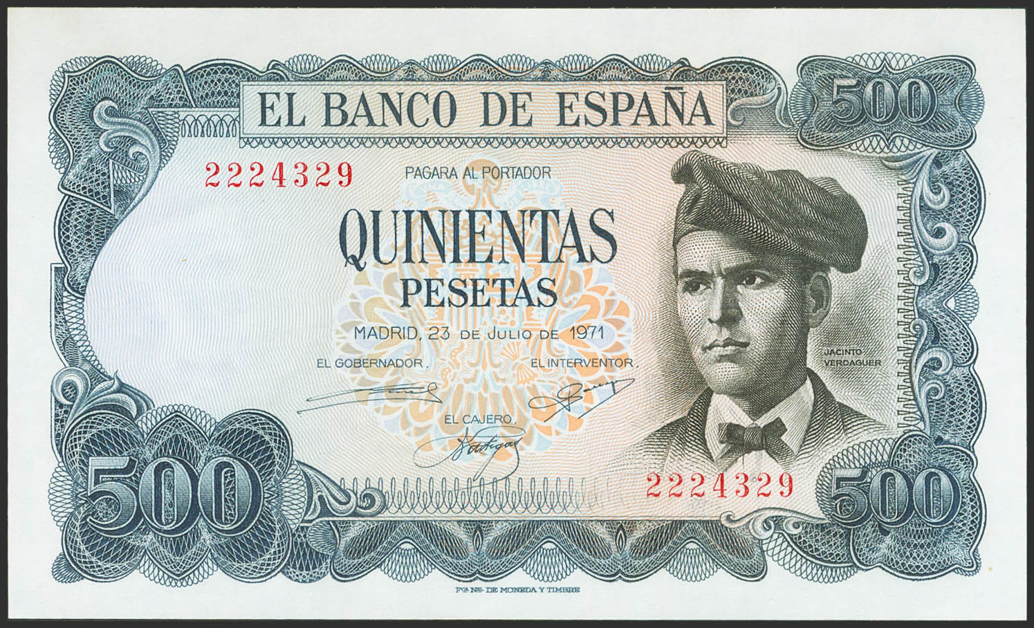 500 Pesetas. 23 de Julio de 1971. Sin serie. (Edifil 2021: 473). Apresto original. EBC+++.