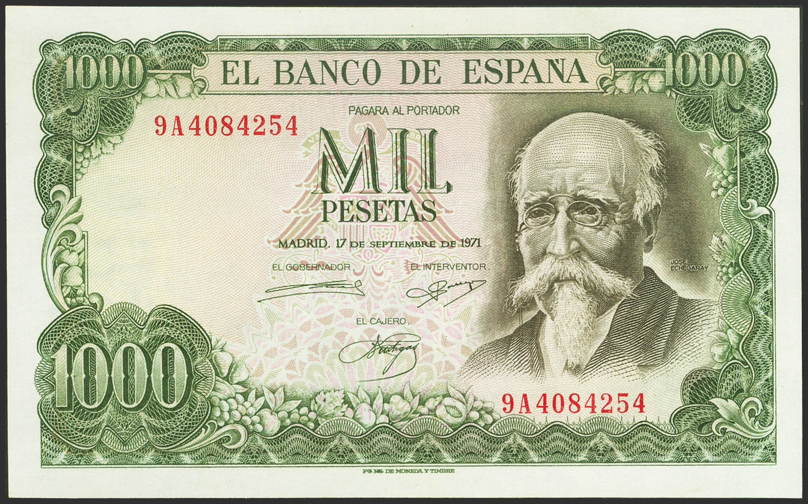 1000 Pesetas. 17 de Septiembre de 1971. Serie especial 9A. (Edifil 2023: 474d). Rara serie, conserva parte de su apresto original. EBC.
