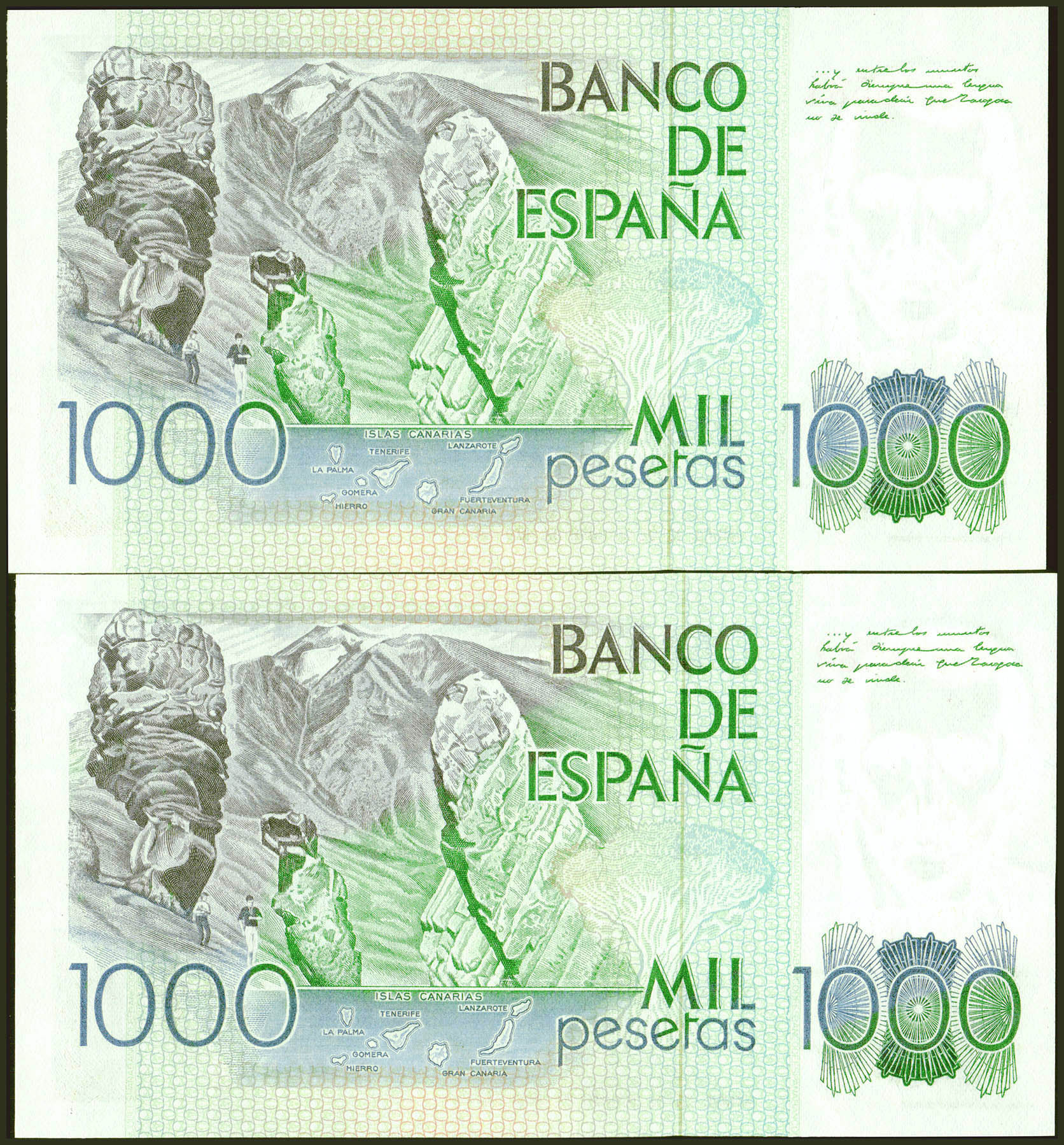 1000 Pesetas. 23 de Octubre de 1979. Pareja correlativa. Sin serie. (Edifil 2021: 477). SC.