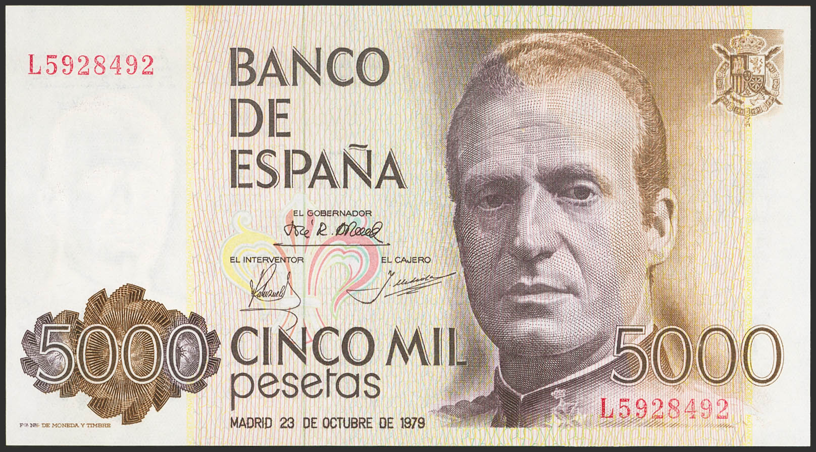 5000 Pesetas. 23 de Octubre de 1979. Serie L. (Edifil 2021: 478a). SC-.