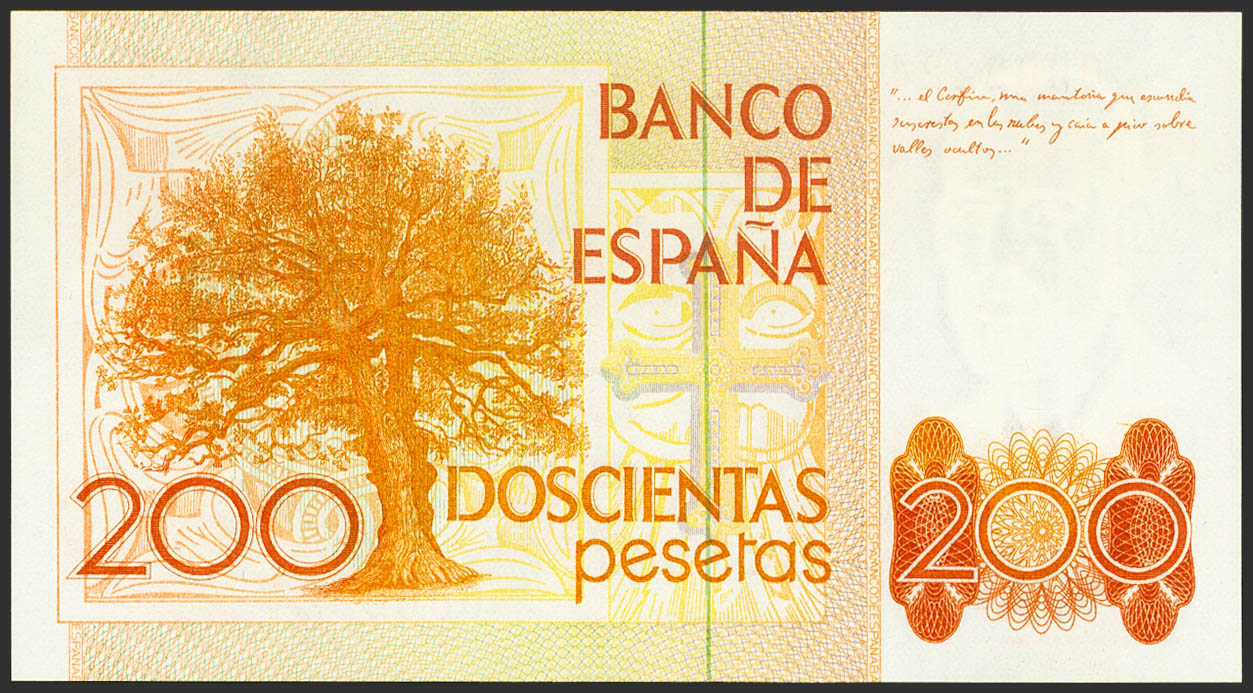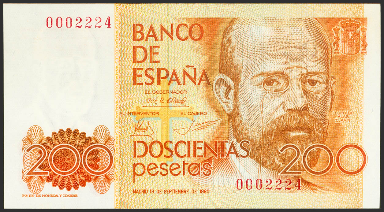 200 Pesetas. 16 de Septiembre de 1980. Sin serie y numeración bajísima. (Edifil 2021: 480). SC.