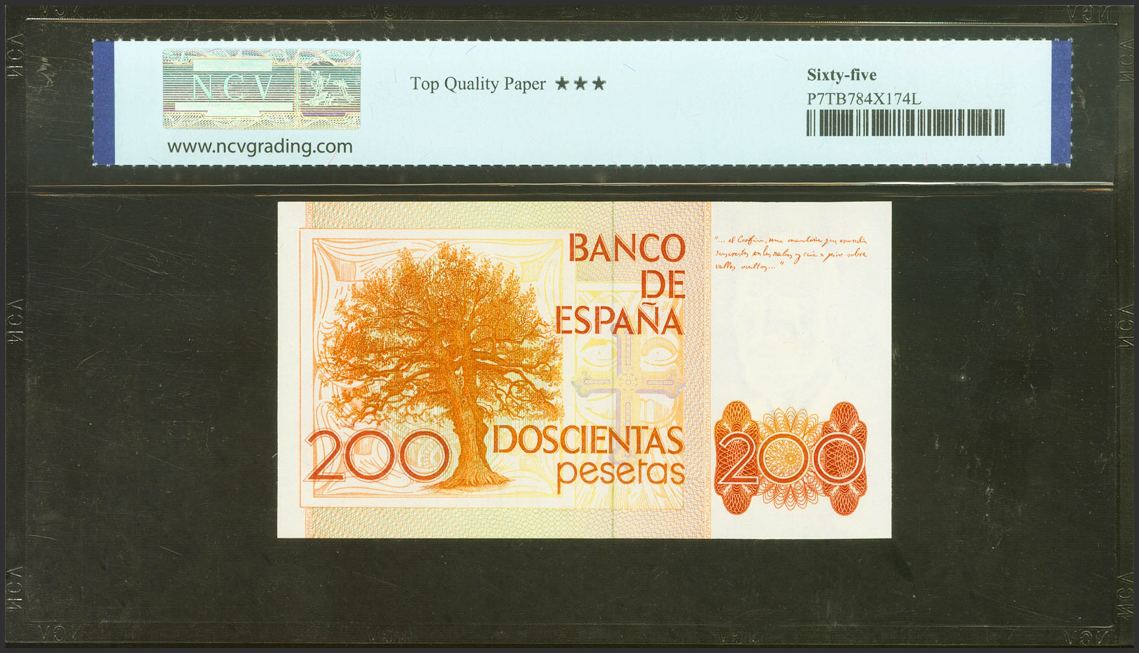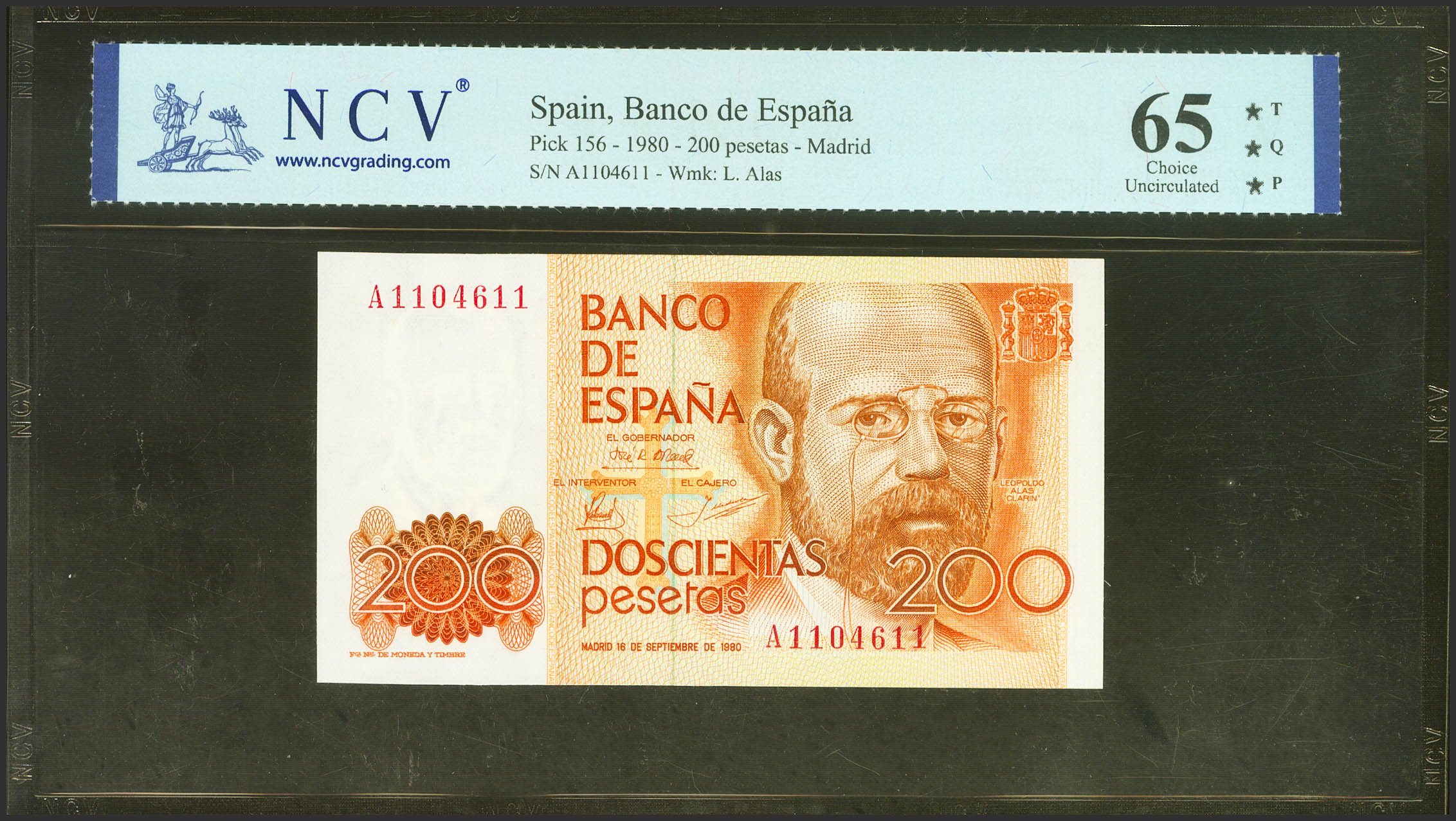 200 Pesetas. 16 de Septiembre de 1980. Serie A. (Edifil 2023: 480a, Pick: 156). SC. Encapsulado NCV65TQP.