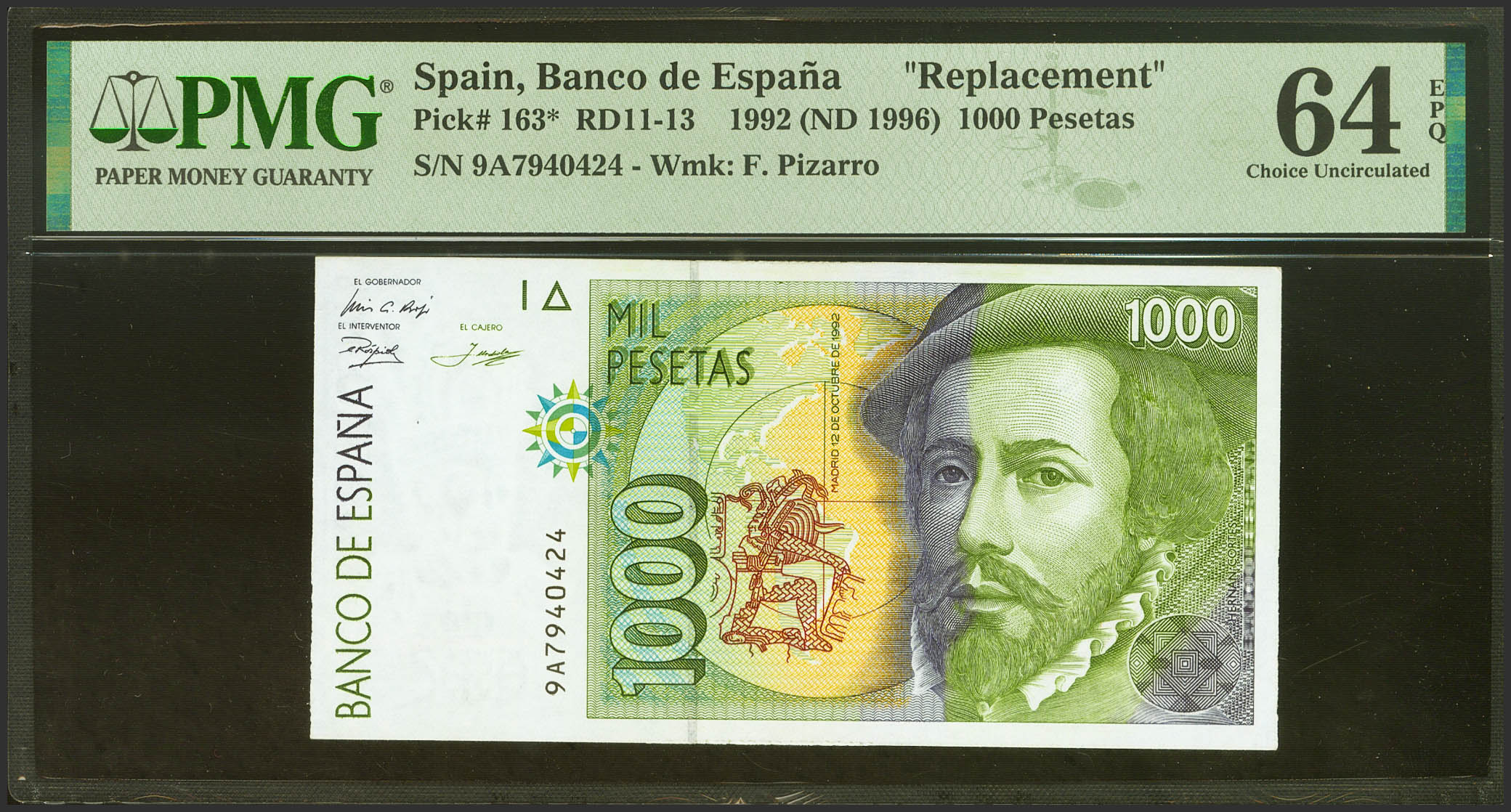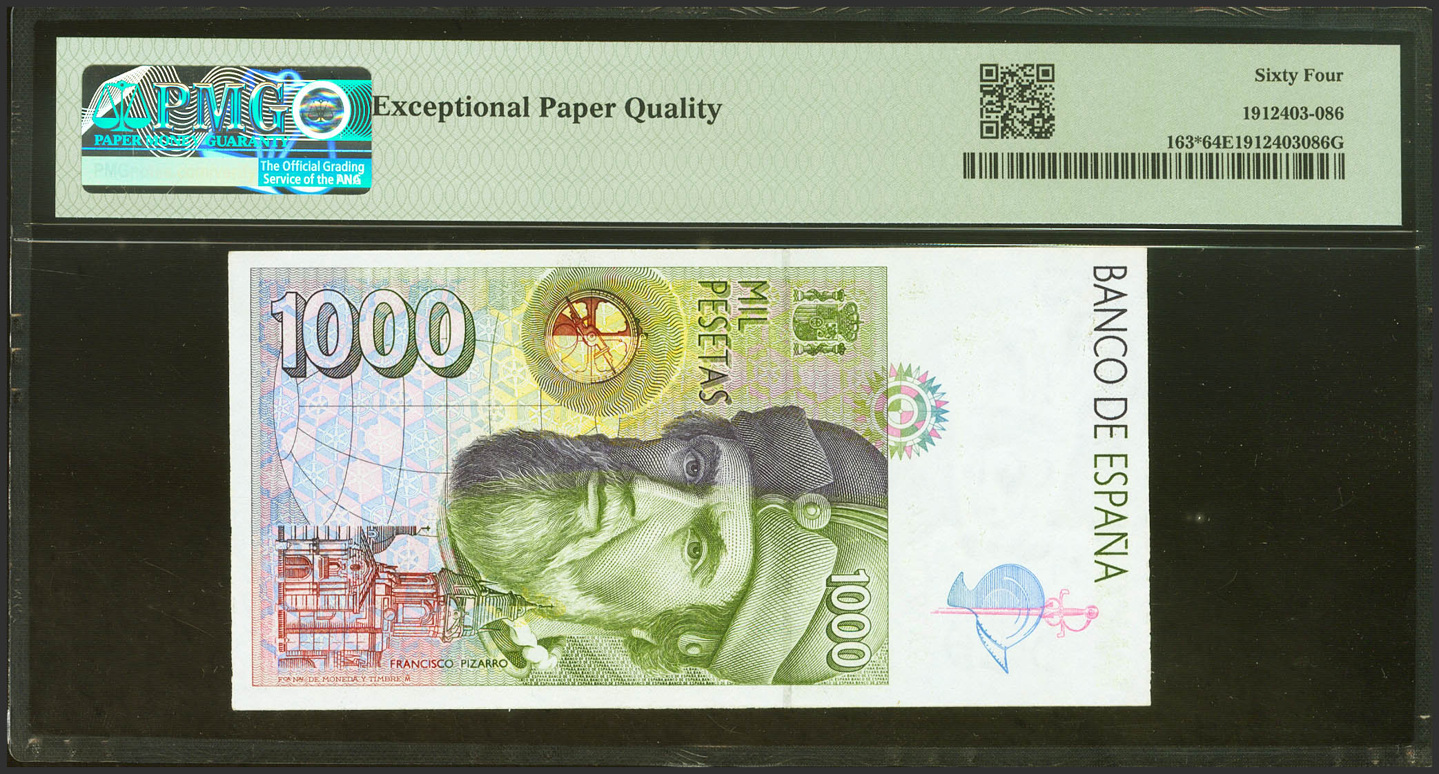 1000 Pesetas. 12 de Octubre de 1992. Serie especial 9A. (Edifil 2023: 483c, Pick: 163*). SC. Encapsulado PMG64EPQ.