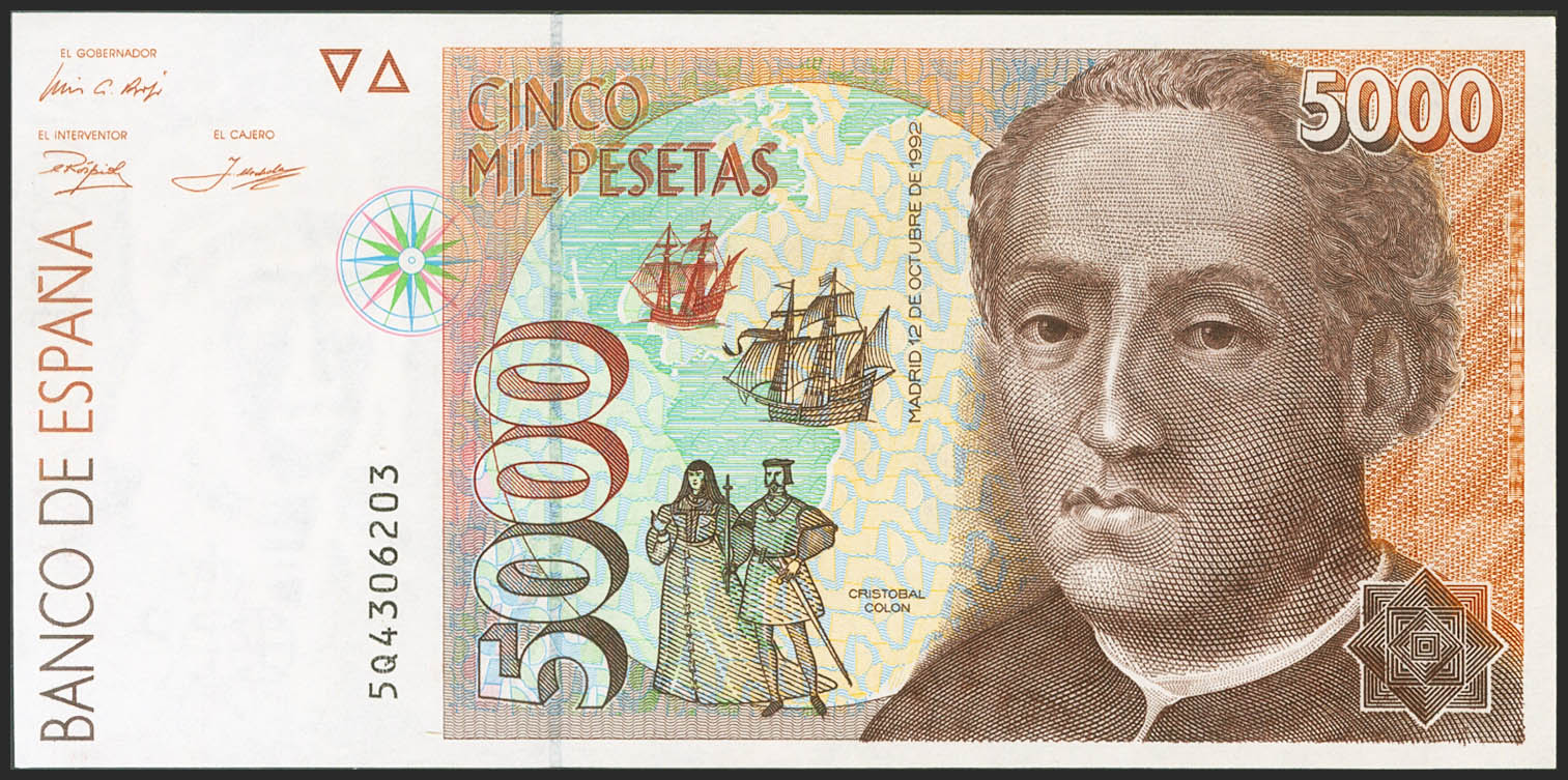 5000 Pesetas. 12 de Octubre de 1992. Serie 5Q. (Edifil 2021: 484a). SC.