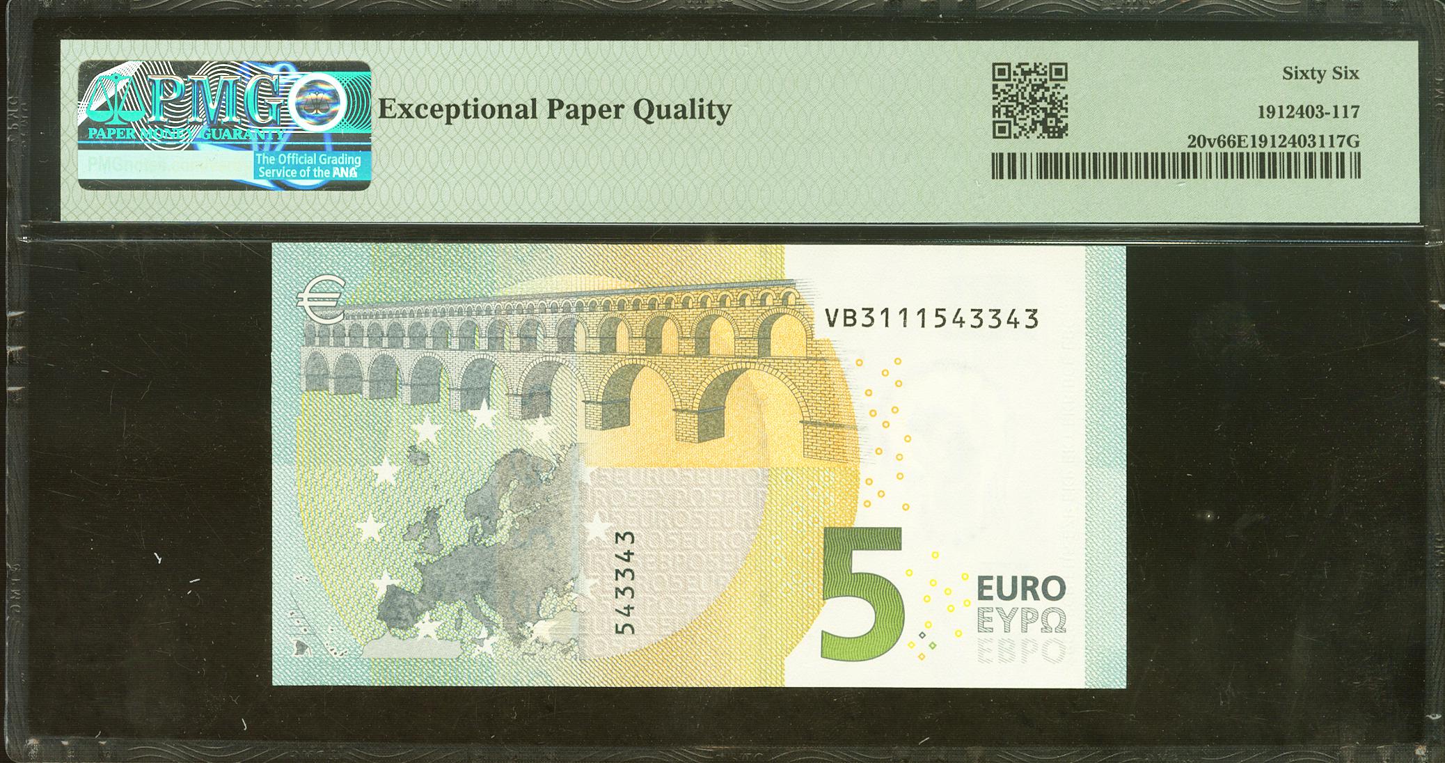 5 Euros. 2 de Mayo de 2013. Firma Draghi. Serie V (España). (Edifil 2021: 493, Pick: 20v). SC. Encapsulado PMG66EPQ.