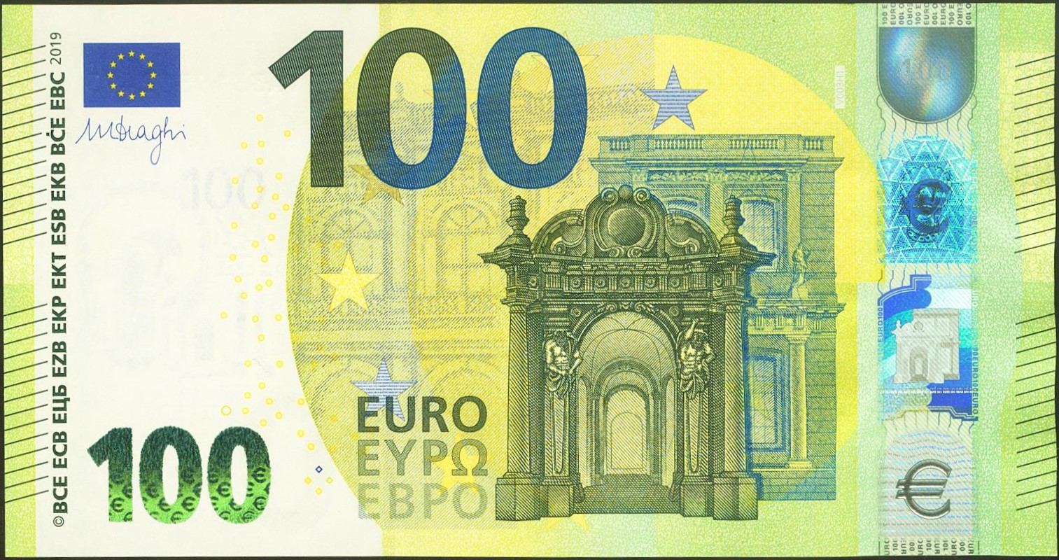 100 Euros. 28 de Mayo de 2019. Firma Draghi. Serie V (España). (Edifil 2017: 497). SC.