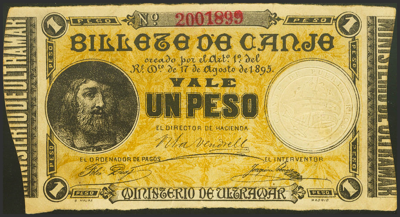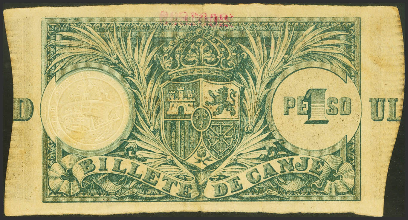 PUERTO RICO. 1 Peso. 17 de Agosto de 1895. (Edifil 2021: 11). Muy raro. MBC+.