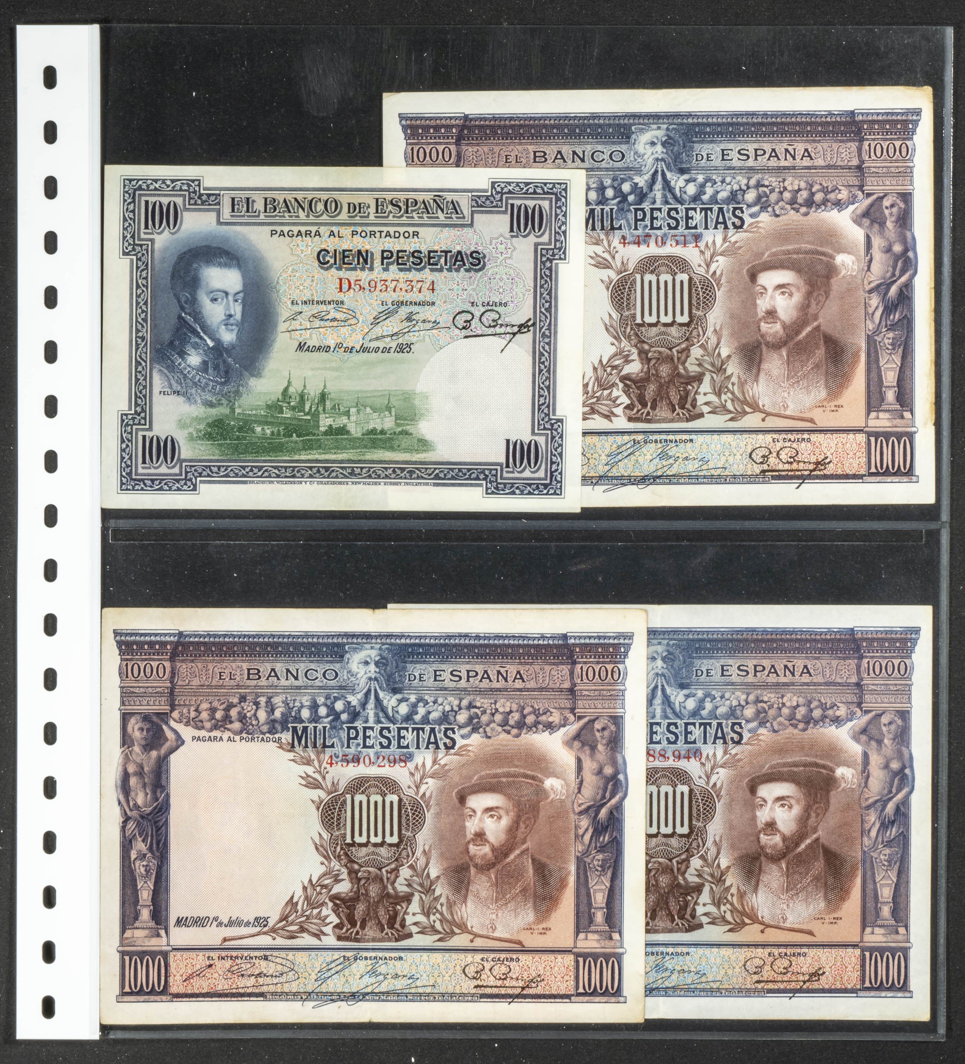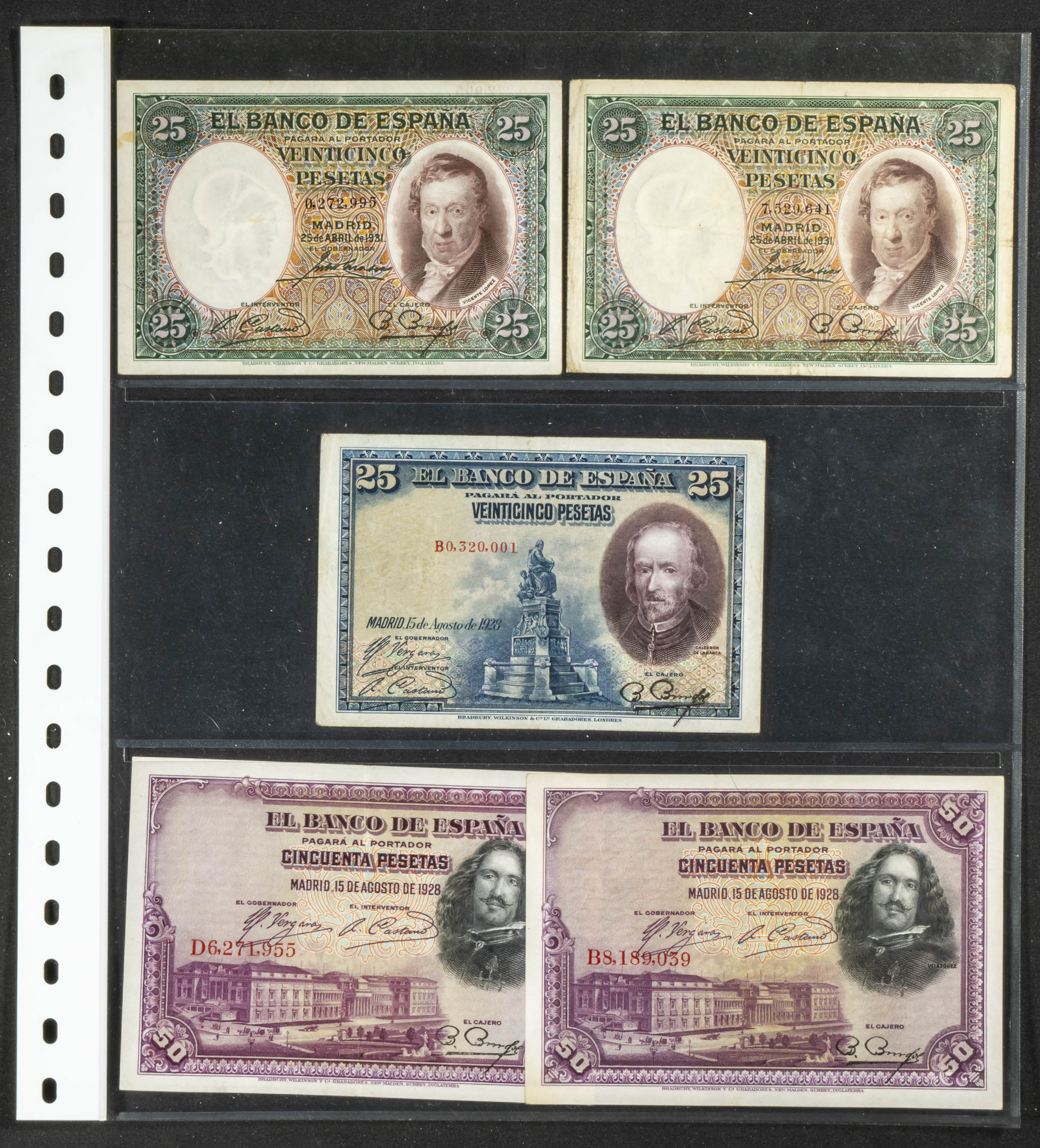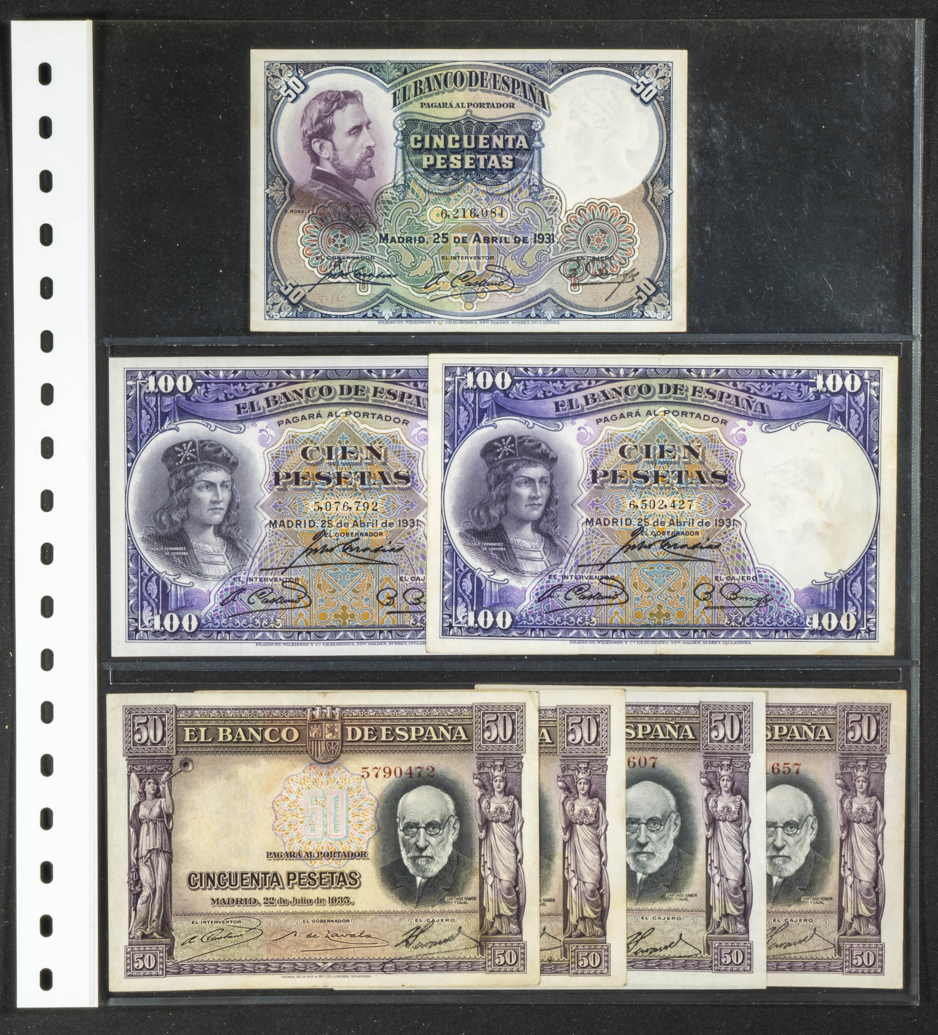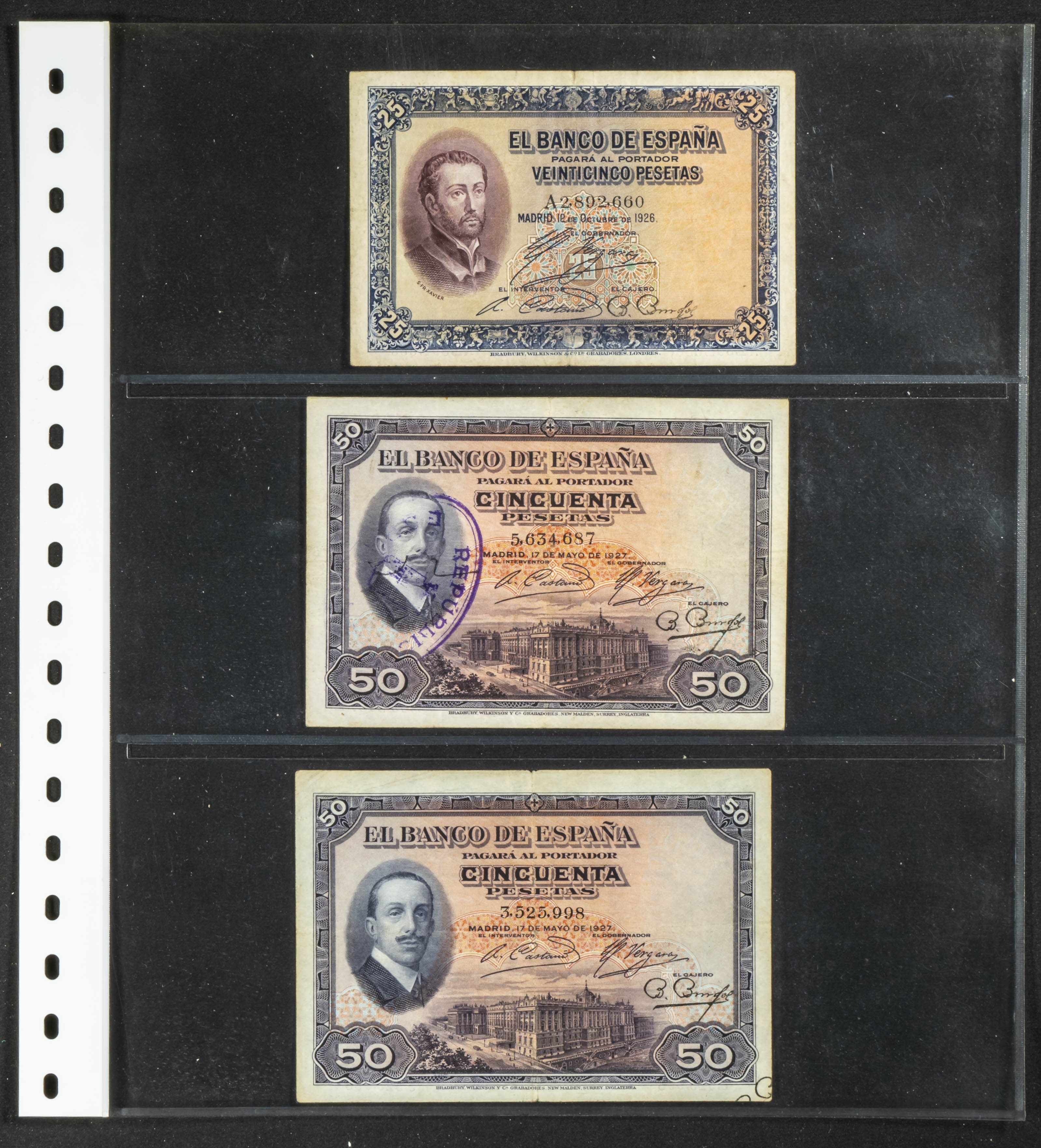 Muy interesante resto de colección de más de 200 billetes del Banco de España que abarca desde el reinado de Alfonso XIII hasta el reinado de Juan Carlos I. IMPRESCINDIBLE A EXAMINAR.