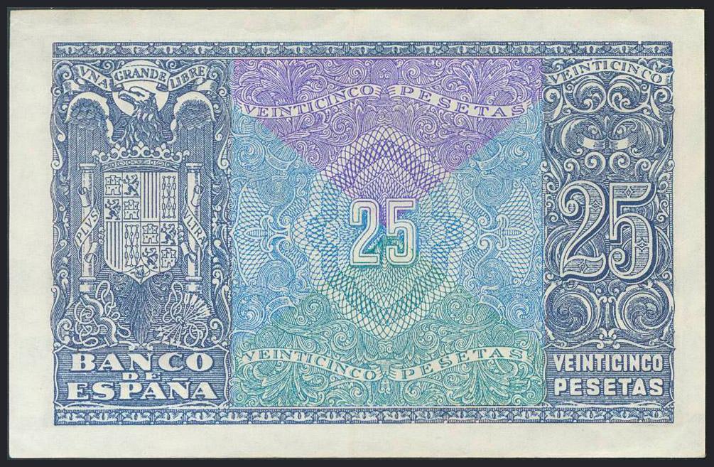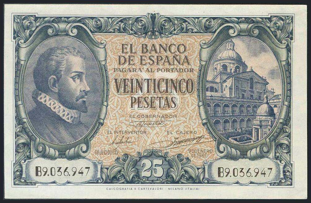 25 Pesetas. 9 de Enero de 1940. Serie B. (Edifil 2017: 436a). Conserva gran parte del apresto original. EBC.