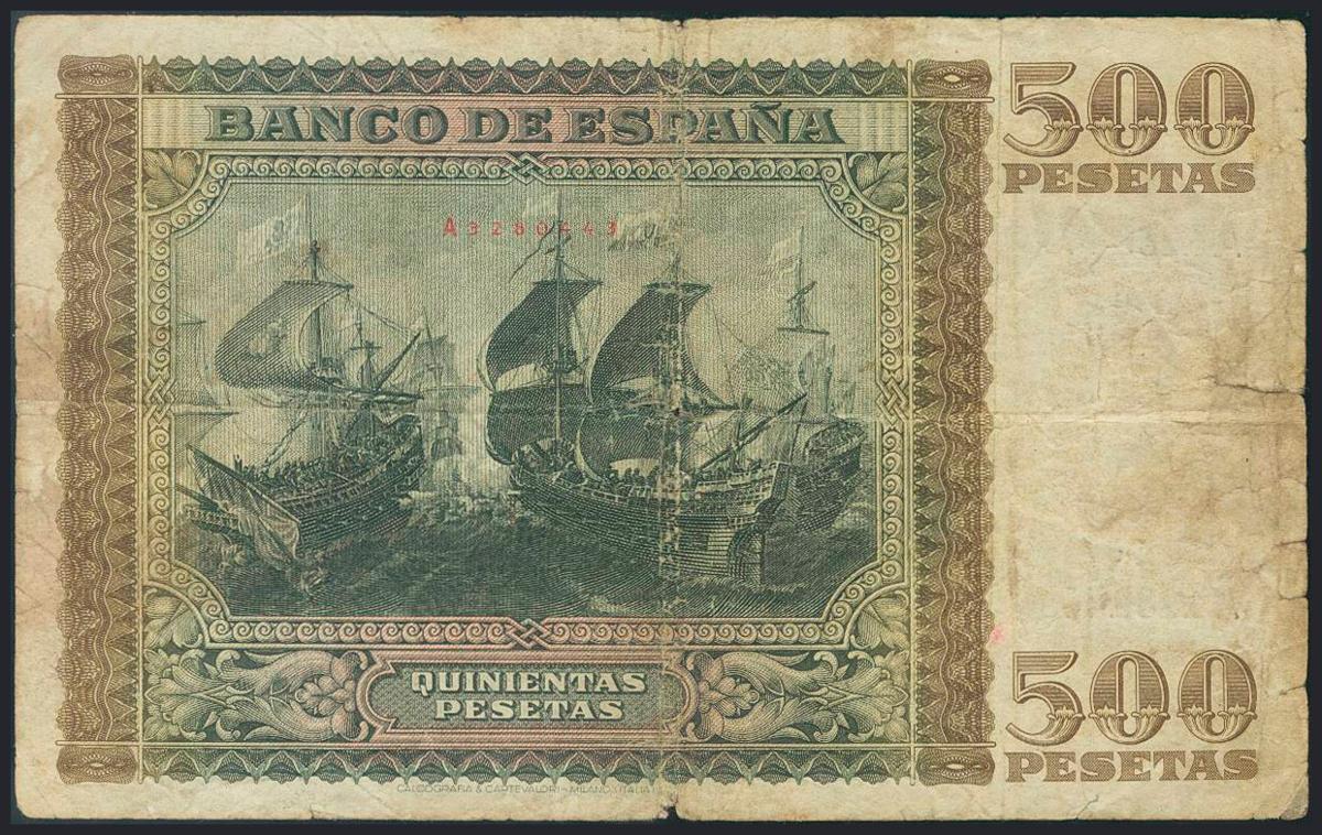 500 Pesetas. 9 de Enero de 1940. Serie A. (Edifil 2017: 439). RC.
