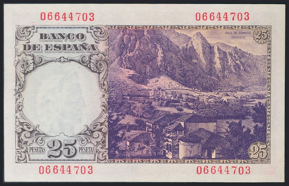 25 Pesetas. 19 de Febrero de 1946. Sin serie. (Edifil 2017: 450). Doblez en la esquina inferior izquierda. EBC+.