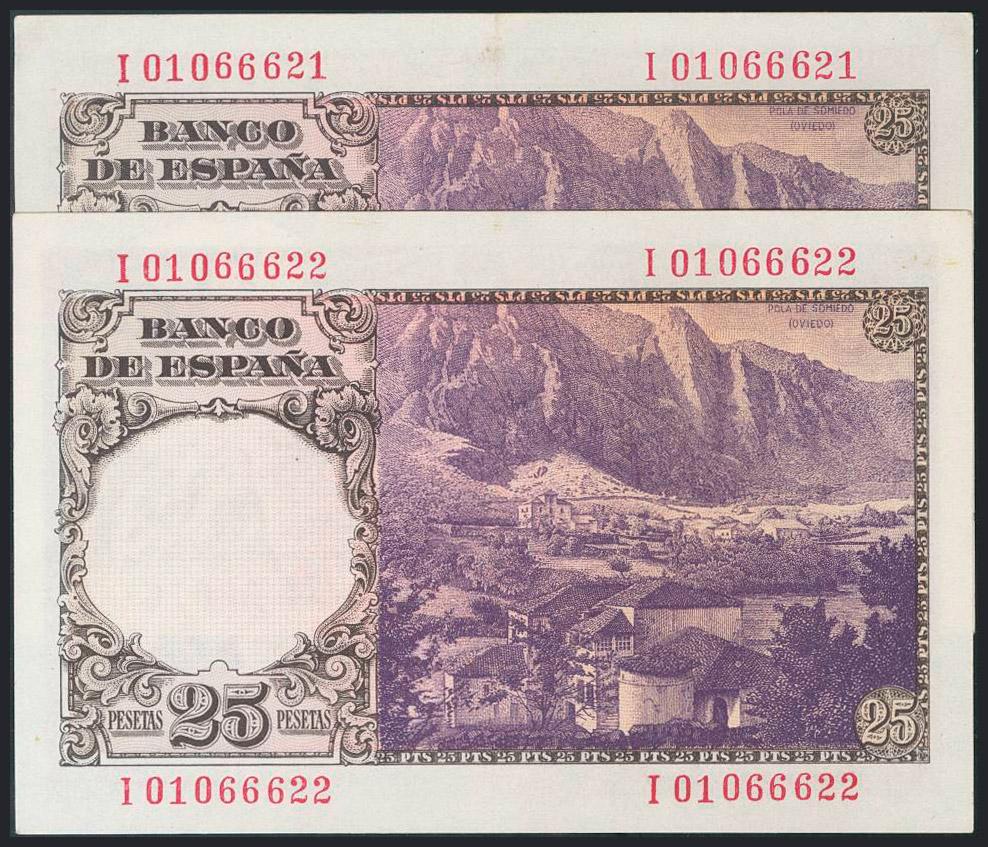 25 Pesetas. 19 de Febrero de 1946. Pareja correlativa. Serie I. (Edifil 2017: 450a). EBC.