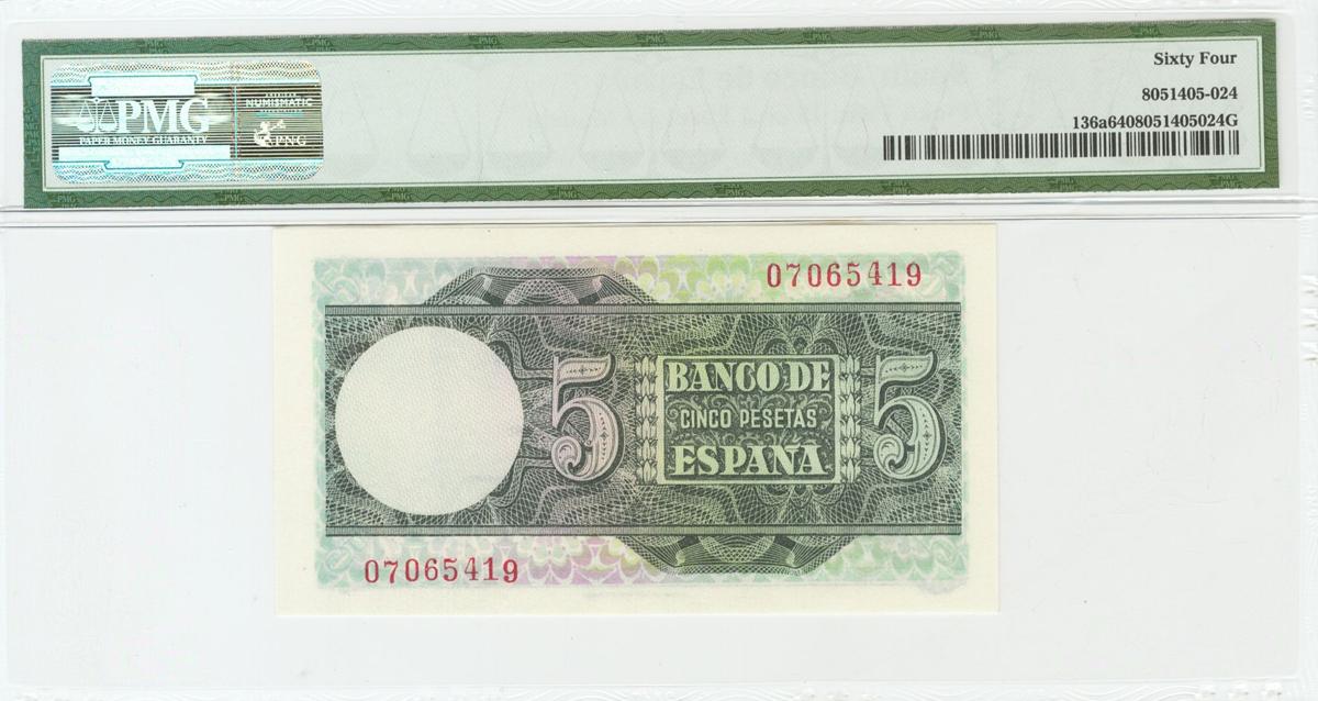 5 Pesetas. 5 de Marzo de 1948. Sin serie. (Edifil 2017: 455). Encapsulado PMG64. SC.