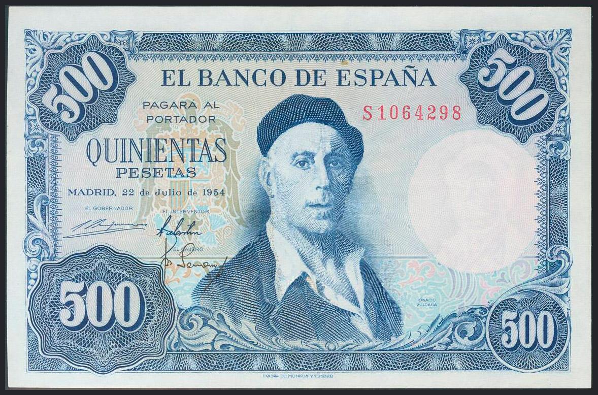 500 Pesetas. 22 de Julio de 1954. Puntito del papel. Serie S. (Edifil 2017: 468b). SC-.