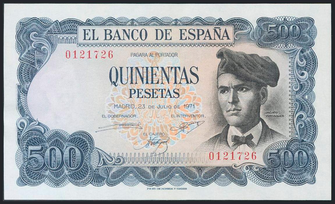 500 Pesetas. 23 de Julio de 1971. Sin serie. (Edifil 2017: 473). SC.