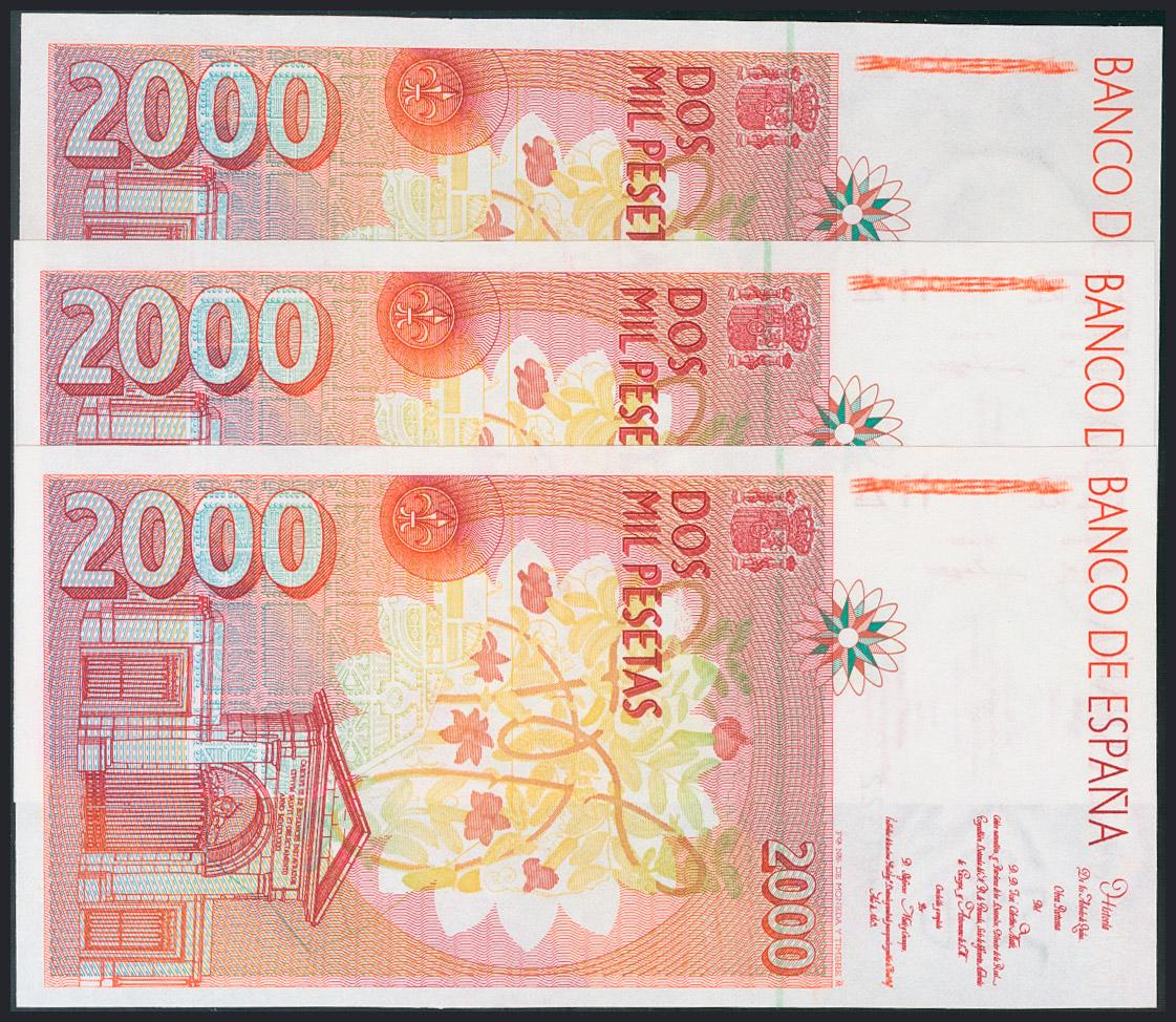 2000 Pesetas. 24 de Abril de 1992. Trío correlativo. Sin serie. (Edifil 2017: 482). SC.