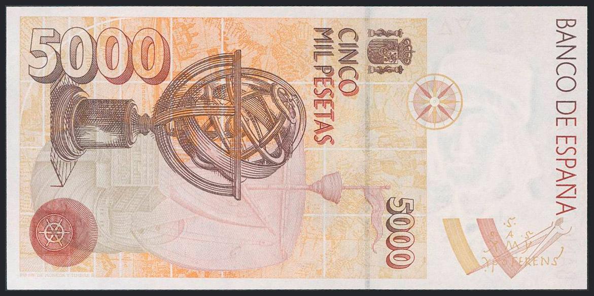 5000 Pesetas. 12 de Diciembre de 1992. Sin serie. (Edifil 2017: 484). SC.