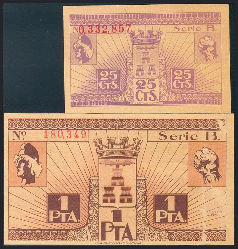 ALBACETE. 25 Céntimos y 1 Peseta. 8 de Noviembre de 1937. (González: 130, 132). EBC/MBC.
