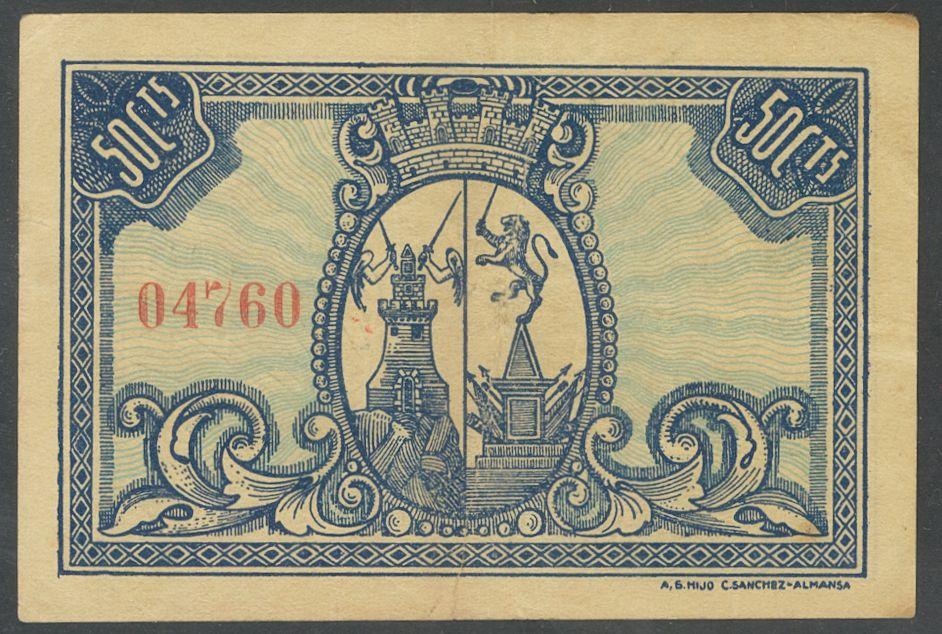 ALMANSA (ALBACETE). 50 Céntimos. (1937ca). (González: 549). MBC.
