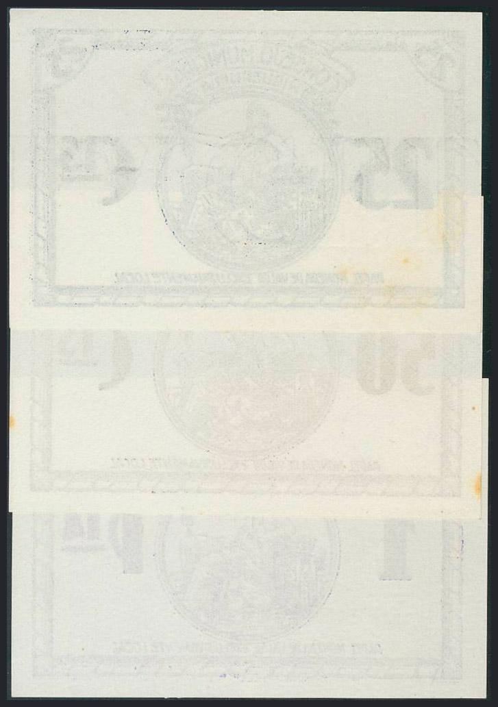 HIGUERUELA (ALBACETE). (1937ca). Serie completa 25 Céntimos, 50 Céntimos y 1 Peseta (sin sello y sin numeración al dorso). (González: 2842/44). EBC.