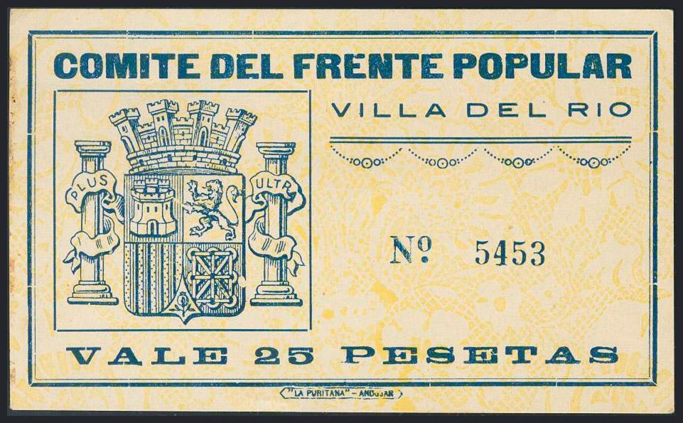 VILLA DEL RIO (CORDOBA). 25 Pesetas. (1937ca). (González: 5493). EBC.