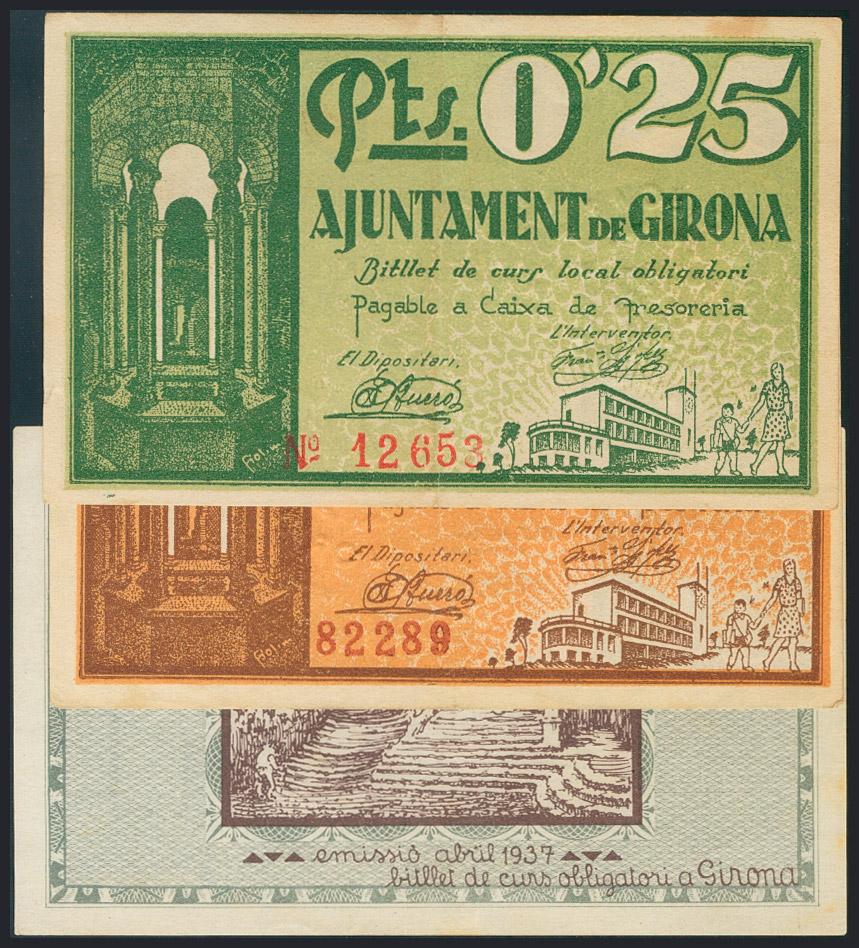 GERONA. Serie completa del 25 Céntimos, 50 Céntimos y 1 Peseta. 1937. (González: 8030/32).