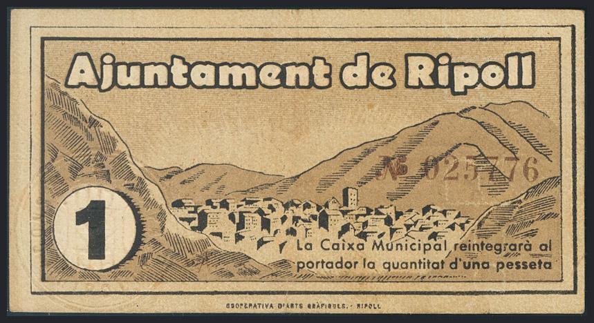RIPOLL (GERONA). 1 Peseta. 29 de Octubre de 1937. EBC.