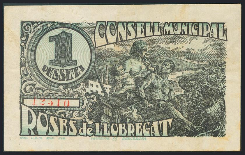 ROSES DE LLOBREGAT (BARCELONA). 1 Peseta. 20 de Mayo de 1937. (González: 9753). BC.