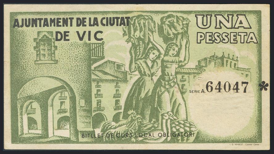 VIC (BARCELONA). 1 Peseta. 7 de Junio de 1937. (González: 10631). MBC.