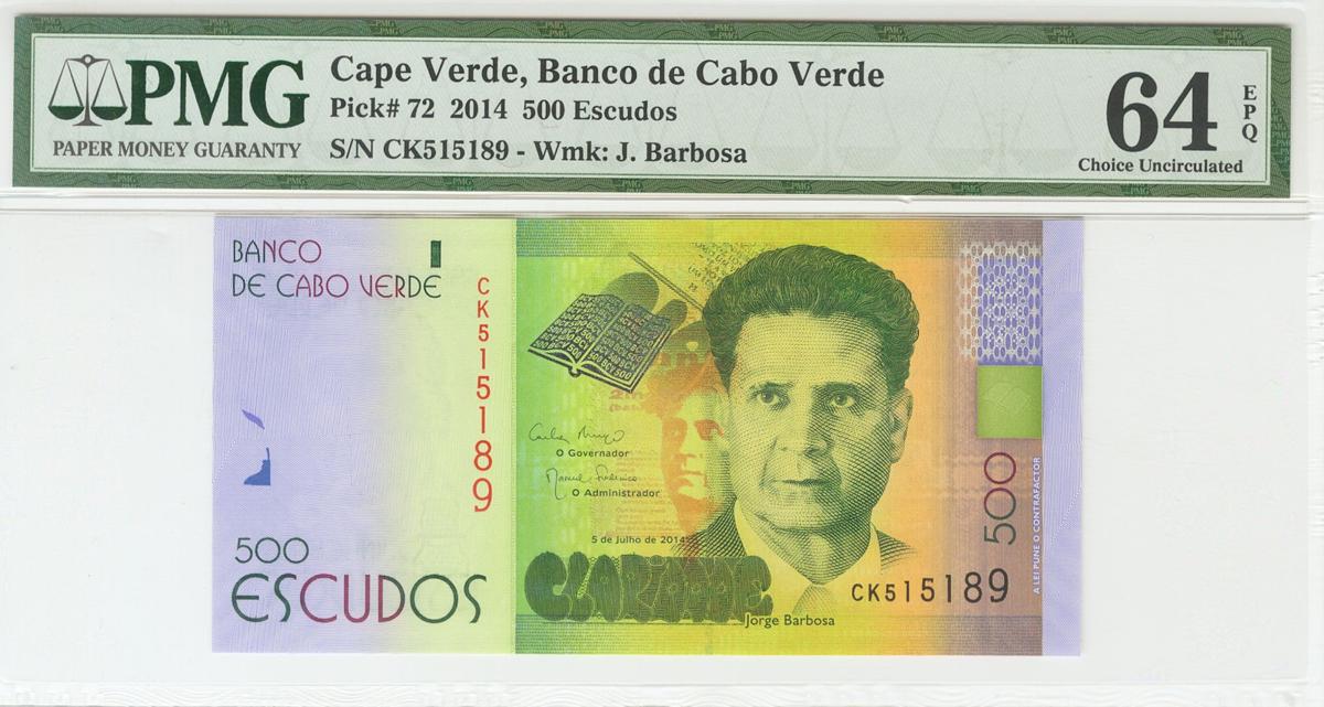 CABO VERDE. 500 Escudos. 5 de Julio de 2014. (Pick: 72). Encapsulado PMG64EPQ.