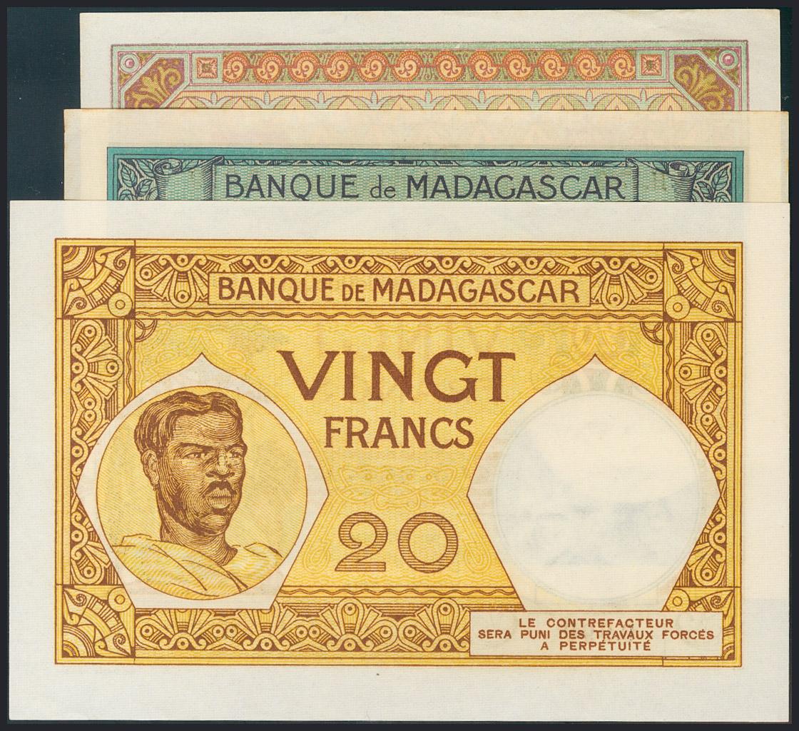 MADAGASCAR. 5, 10 y 20 Francs. (1937-1947). Pick 35b-36c-37. EBC+/SC.