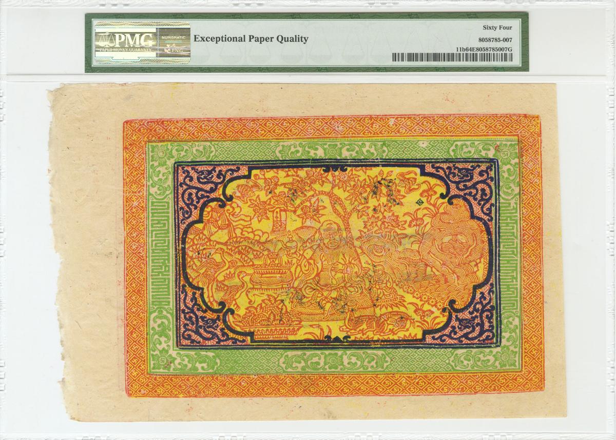 TIBET. 100 Srang. (1942ca). Texto pequeño 85-87 mm. (Pick: 11b). Encapsulado PMG64EPQ. Raro en esta excepcional calidad.