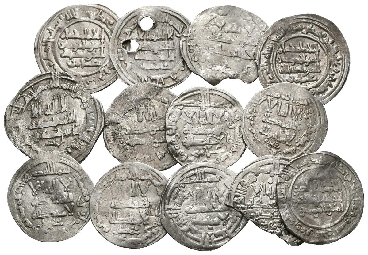 HISPANO ARABES. Lote compuesto por 13 Dirhams del Califato de Córdoba, acuñados por Abd Al-Rahman III, Al-Hakam II y Hisham II (Al-Andalus y Madinat Al-Zahra). Ar. MBC-/MBC+. A EXAMINAR