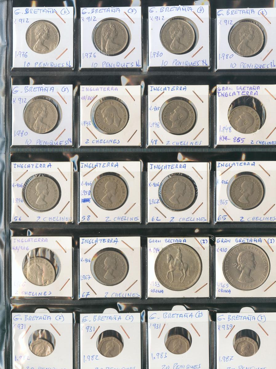 GRAN BRETAÑA. Colección avanzada compuesta 148 monedas desde 1899 hasta 1998 de los valores: 1/2 Pence, 1 Pence, 2 Pence, 3 Pence, 5 Pence, 10 Pence, 20 Pence, 50 Pence, 1 Crown y 1 Pound. Calidades diversas. IMPRESCINDIBLE EXAMINAR.