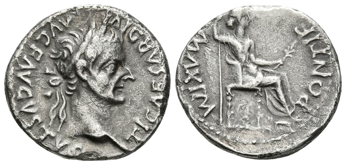 TIBERIO. Denario. 14-37 d.C. Roma. A/ Busto laureado a derecha TI CAESAR DIVI AVG F AVGVSTVS. R/ Livia sentada a derecha con cetro y palma. PONTIF MAXIM. RIC 30. Ar. 3,08g. MBC+.