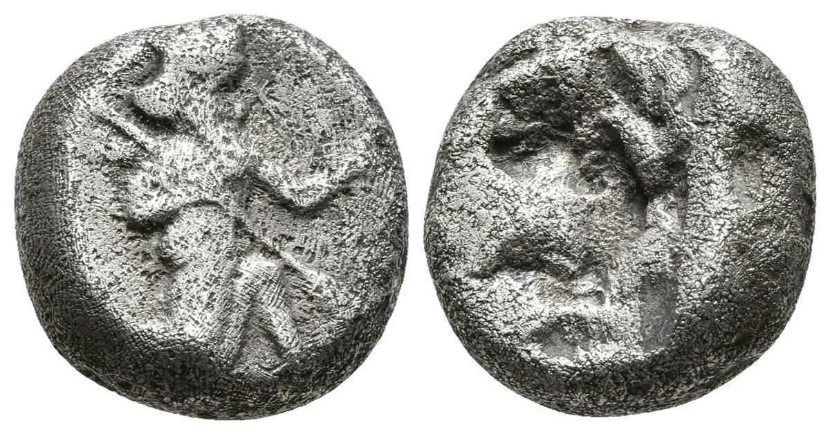 REYES DE PERSIA, Tiempos de Xerxes II a Darios II. Siglos. 485-420 a.C. Sardis. A/ Rey persa corriendo arrodillado a derecha, sosteniendo lanza y arco. R/ Incuso. Carradice16-31. Ar. 5,21g. MBC.