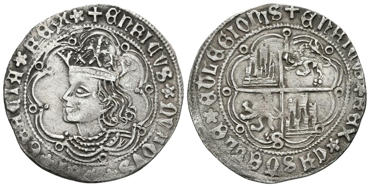 ENRIQUE IV. Real de busto. (1454-1474). Sevilla. A/ Leyenda: + ENRICVS * QARTVS * DEI * GRACIA * REX * . R/ Leyenda: + ENRICVS * REX * CASTELLE * ETLEGIONIS. AB 685. Ar. 3,14g. MBC+/MBC.