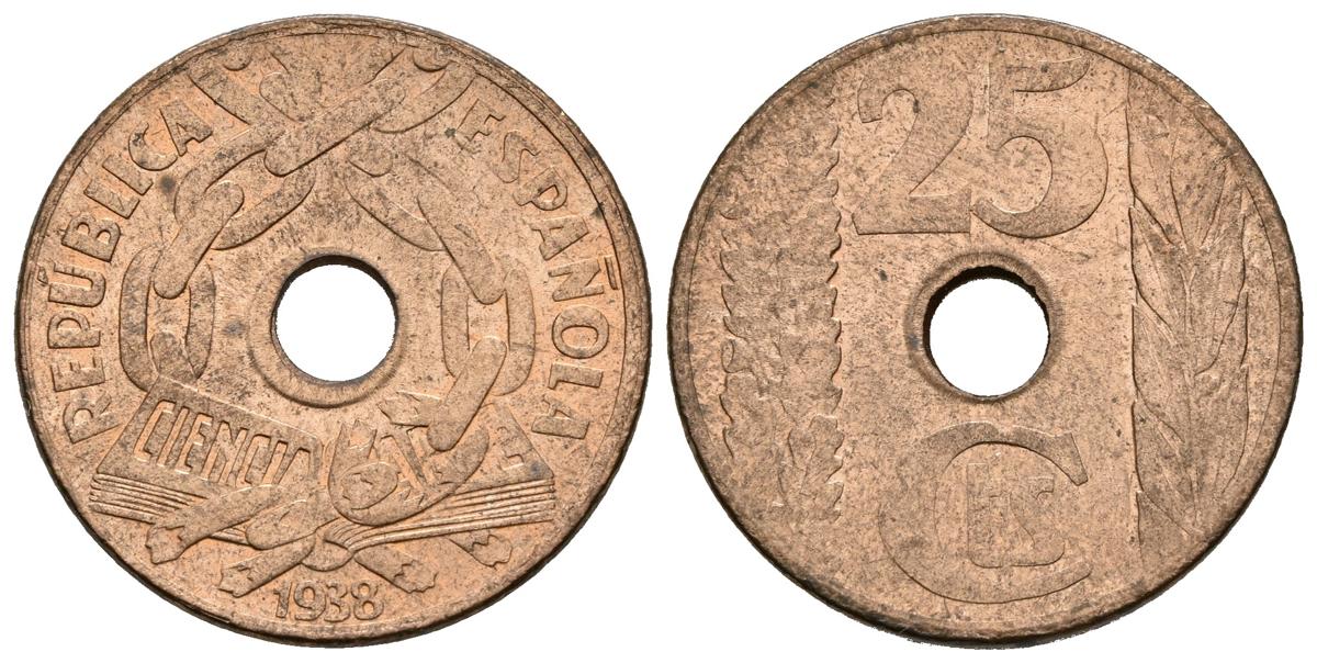 II REPUBLICA. 25 Céntimos. 1938. Madrid. Cal-7. Ae. 4,90g. EBC+.
