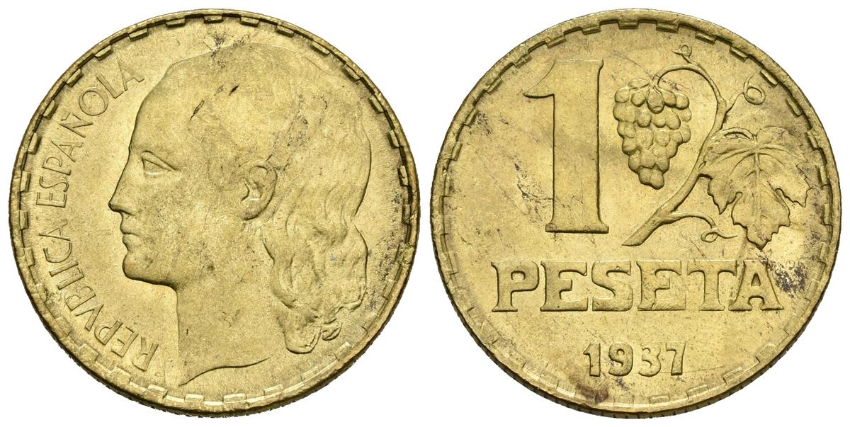 II REPUBLICA. 1 Peseta. 1937. Cal-2. Cu/Ni. 4,89g. EBC.