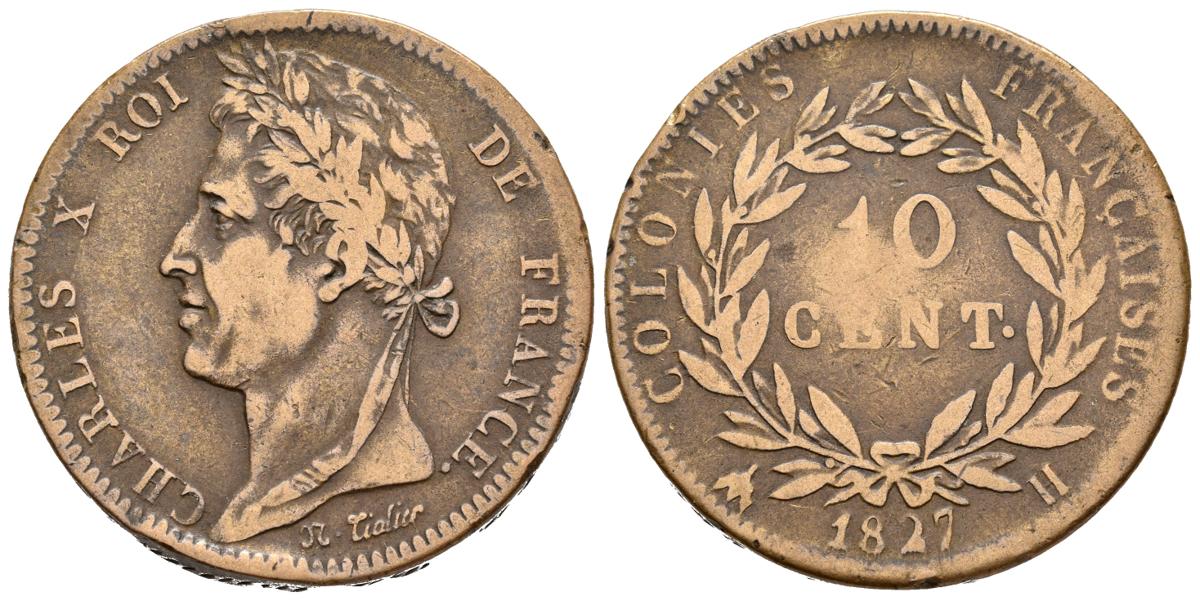 FRANCIA. Carlos X. 10 Centimes. 1827. La Rochelle H. Km#11.2. Ae. 20,74g. MBC-.