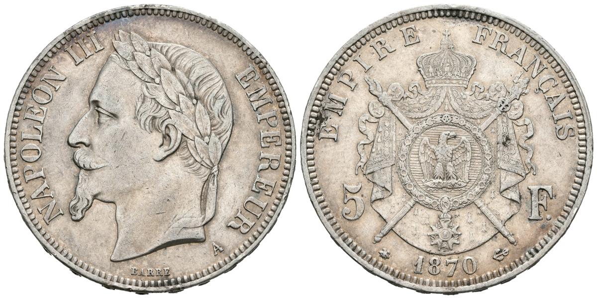 FRANCIA. Napoleón III. 5 Francs. 1870. Paris A. Km#799.1. Ar. 24,80g. EBC-.