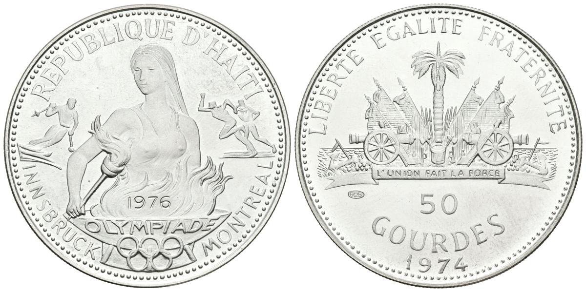 HAITI. 50 Gourdes. 1974. Olimpiadas de Invierno de Innsbruk y Montreal. Km#113.1. Ar. 16,74g. SC.