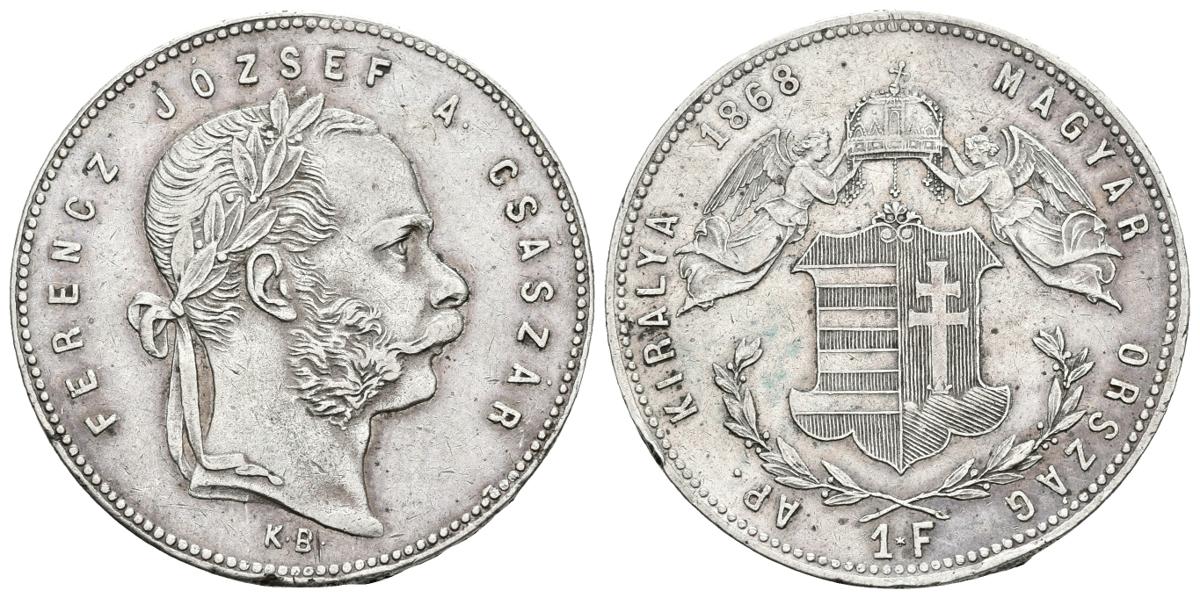 HUNGRIA. Franz Josef I. 1 Forint. 1868. K·B·. Fr. 1769. Ar. 12,32g. MBC+.