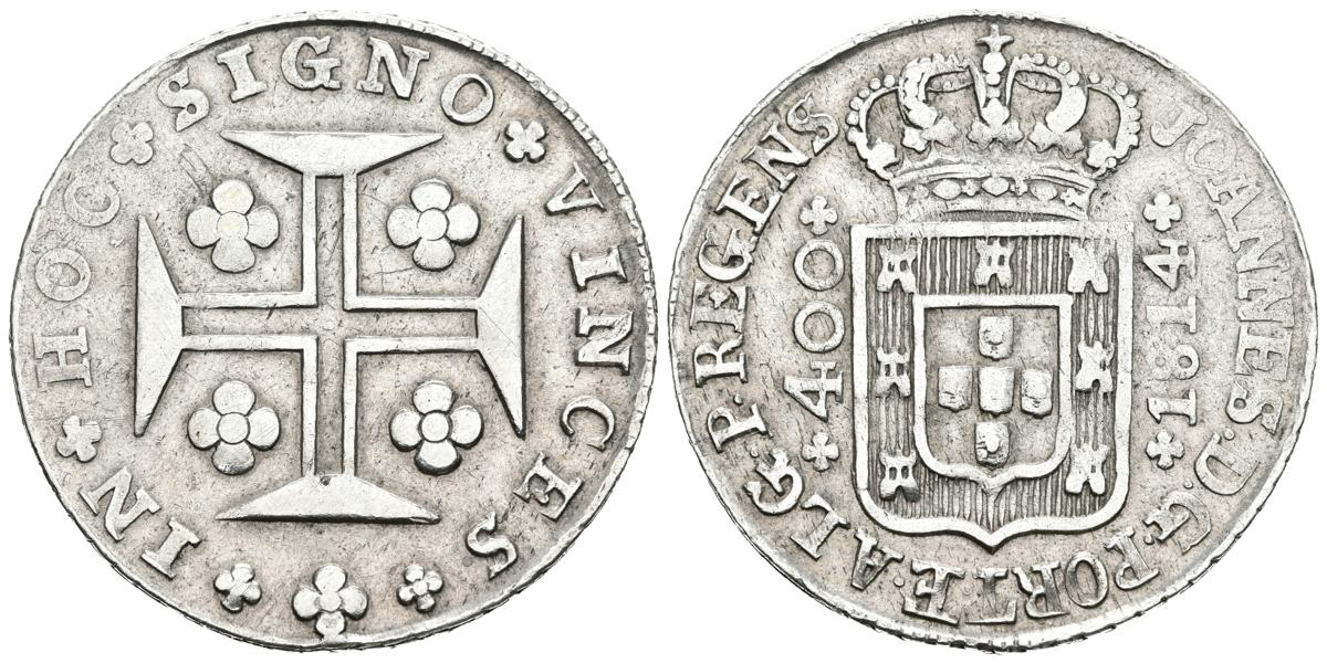 BRASIL. Johannes, Príncipe regente. 400 Reis. 1814. Lisboa. Km#331. Ar. 14,12g. MBC.