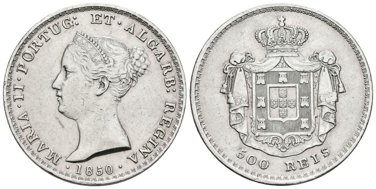 PORTUGAL. María II. 500 Reis. 1850. Gomes 39.17; Km#471. Ar. 14,72g. MBC+.