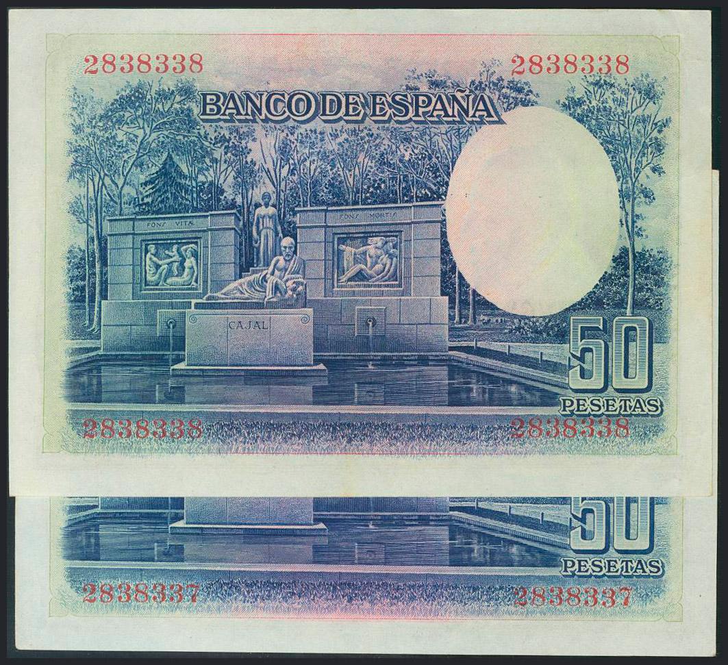 50 Pesetas. 22 de Julio de 1935. Pareja correlativa. Sin serie. (Edifil 2017: 366). EBC.