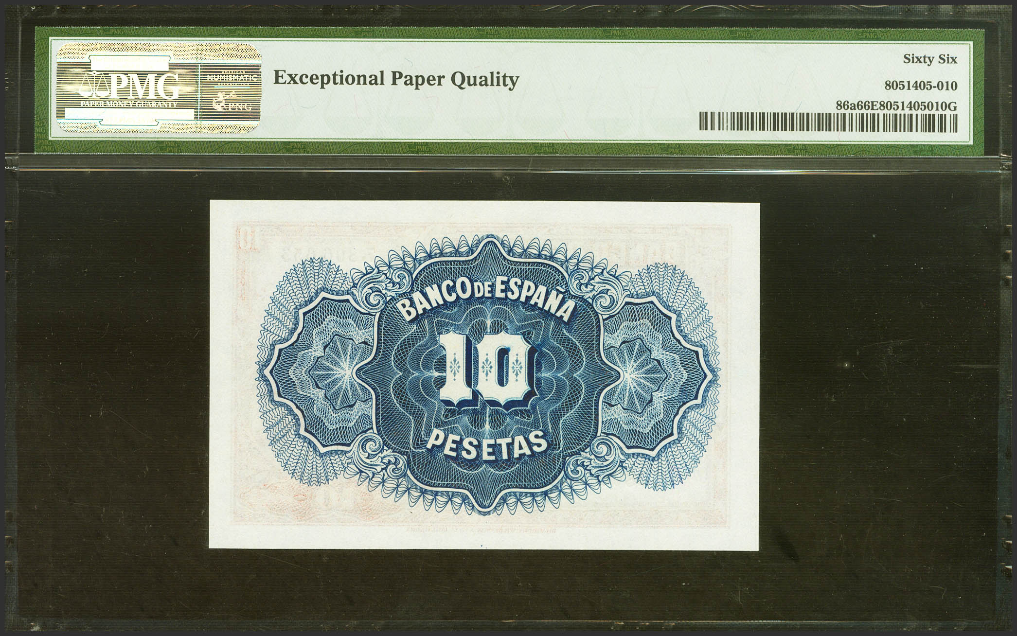10 Pesetas. 1935. Certificado de Plata. Sin serie. (Edifil 2021: 364, Pick: 86a). Inusual en esta calidad, apresto original. SC. Encapsulado PMG66EPQ.