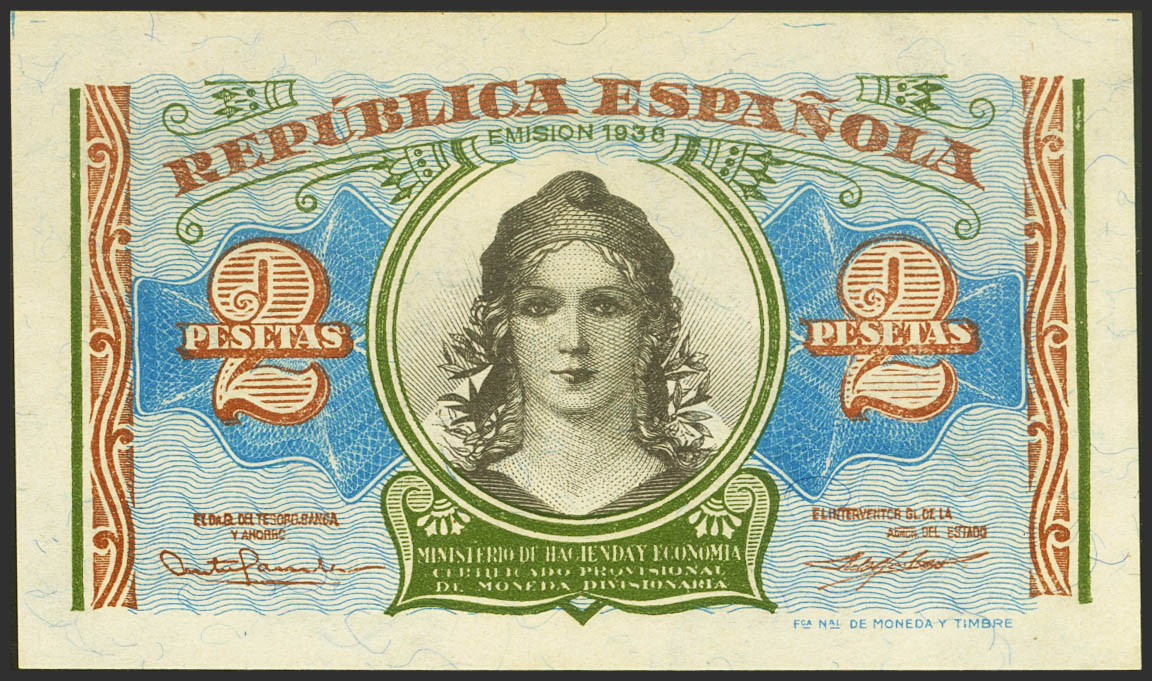2 Pesetas. 1937. Ministerio de Hacienda. Serie A. (Edifil 2023: 393). Apresto original. SC.