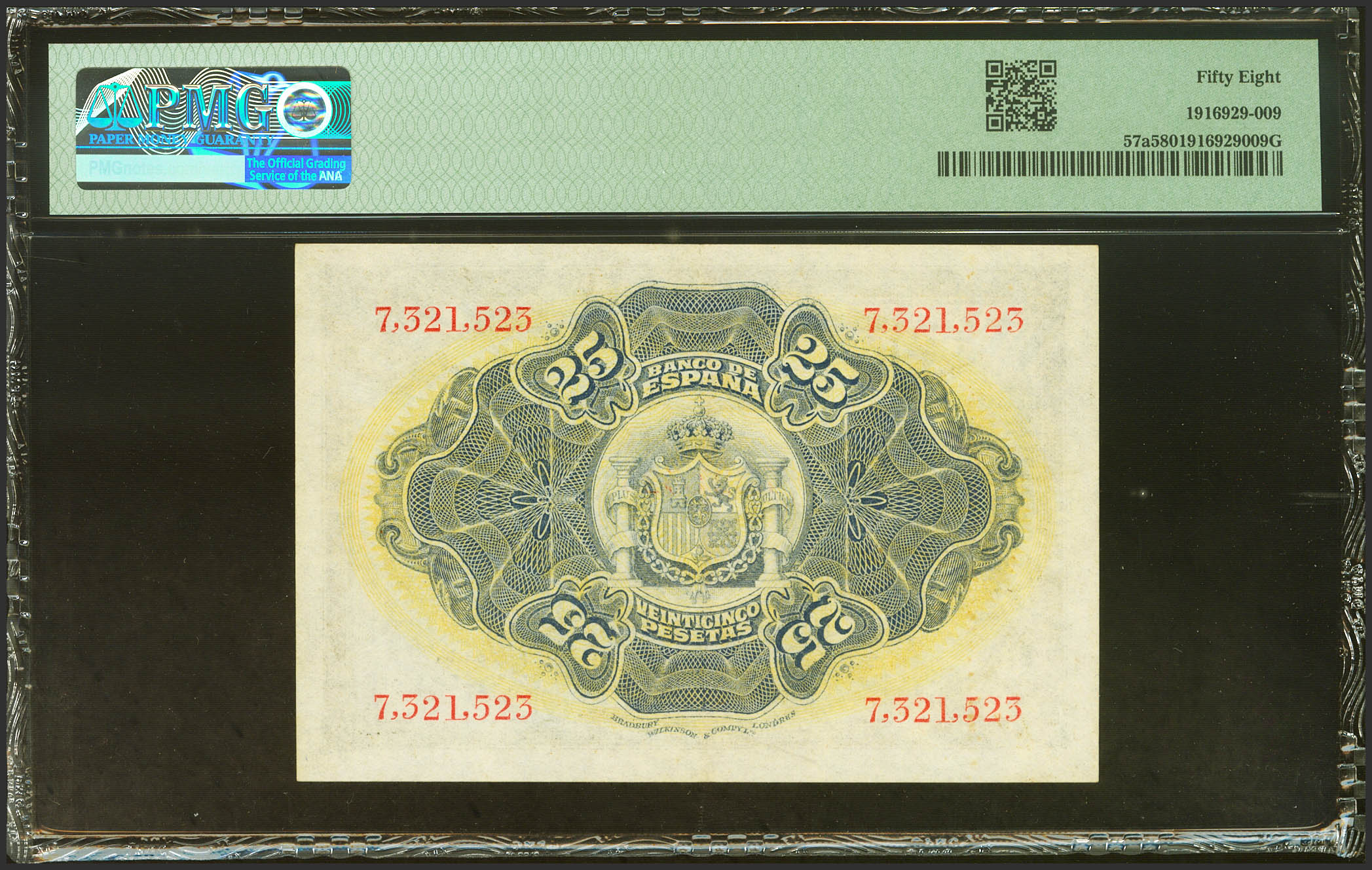 25 Pesetas. 24 de Septiembre de 1906. Sin serie. (Edifil 2023: 314, Pick: 57a). EBC++. Encapsulado PMG58.