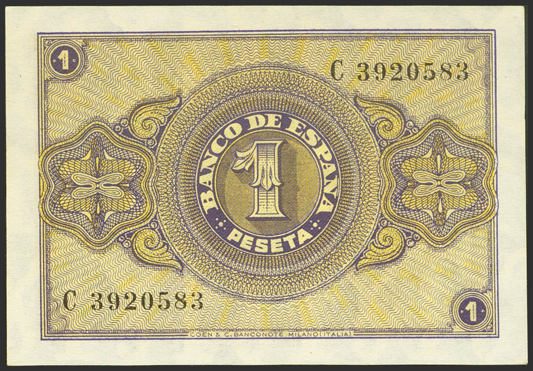 1 Peseta. 12 de Octubre de 1937. Serie C. (Edifil 2021: 425a). Conserva todo su apresto original. SC-.